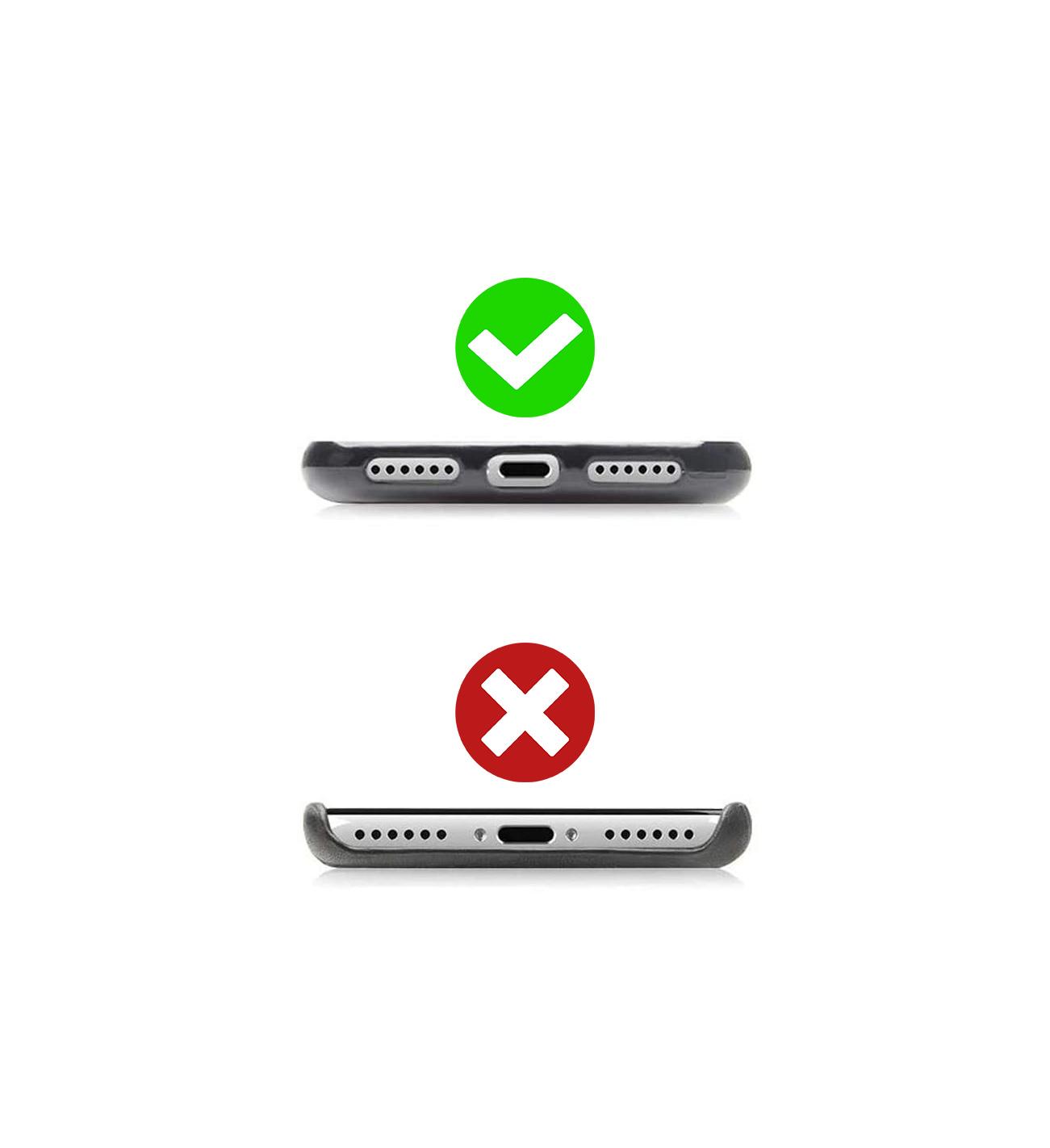 • Phone needs to be inside a full coverage case with dedicated cut-out for charging port