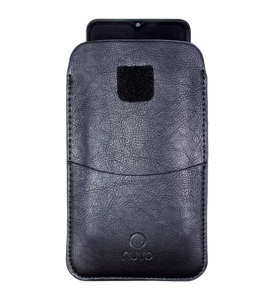 Koženkové ponožkové puzdro na mobil s predným vreckom na karty alebo hotovosť ponúka kompletnú ochranu telefónu.