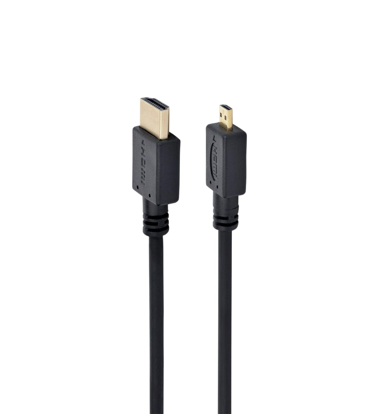 Vysokorýchlostný kábel s 19pin HDMI a micro HDMI pozlátenými konektormi pre čo najspoľahlivejší prenos. Ideálny na prepojenie DVD prehrávačov, A/V prijímačov a podobných zariadení s projektormi, TV zostavami alebo inými zobrazovacími zariadeniami. Dĺžka 3 m.