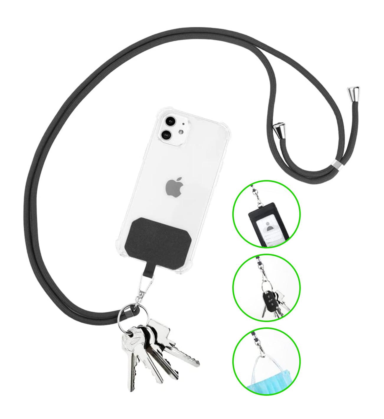 Praktická šnúrka okolo krku na mobil. Nastaviteľná dĺžka ti umožní nosiť mobil okolo krku alebo aj ako kabelku. Vďaka karabínke navyše môžeš na šnúrku okrem mobilu pripnúť aj iné veci ako kľúče, prívesok či vstupnú kartu.